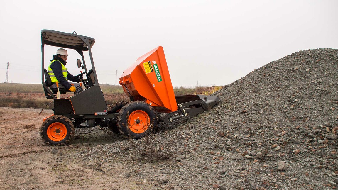 Robusto y económico, el D175RMS destaca por incorporar una pala autocargable en la parte frontal de la máquina. Con una capacidad de carga de 1,75 toneladas y descarga frontal, es ideal para pequeñas obras civiles y granjas. Además, su gran durabilidad y mantenimiento sencillo de muy bajo coste la convierten en una gran opción.