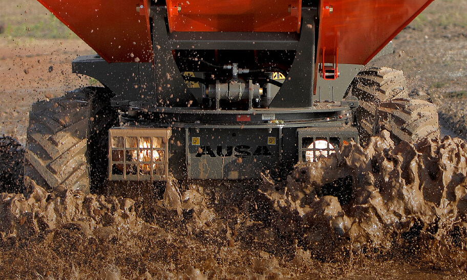 Con una capacidad de carga de 3,5 toneladas y tolva giratoria de 180 grados, el dumper D350AHG es el modelo de la gama media más equilibrado con una gran relación potencia/capacidad.