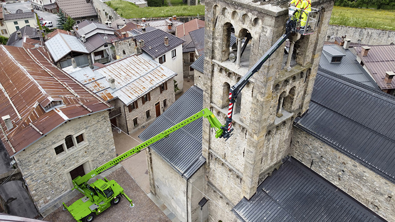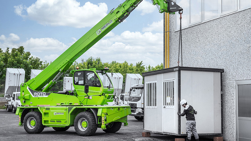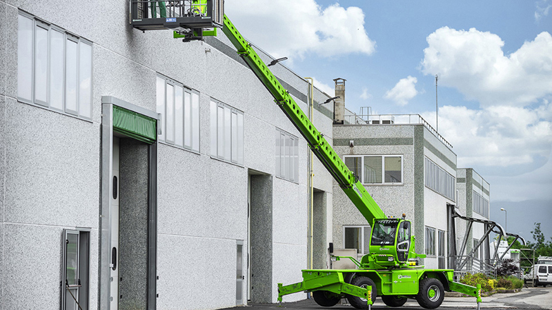 Los manipuladores telescópicos Merlo pueden ser configurados para el uso de las plataformas aéreas porta-personas. Esta solución, conforme a la normativa EN208, asegura un nivel elevado de los sistemas de seguridad, activos y pasivos, durante los trabajos en altura e incrementa la versatilidad de la máquina.